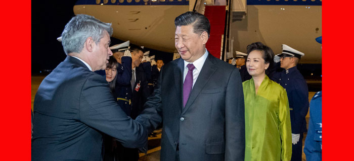 当地时间11月12日晚,国家主席习近平乘专机抵达巴西利亚,出席金砖国家领导人第十一次会晤。